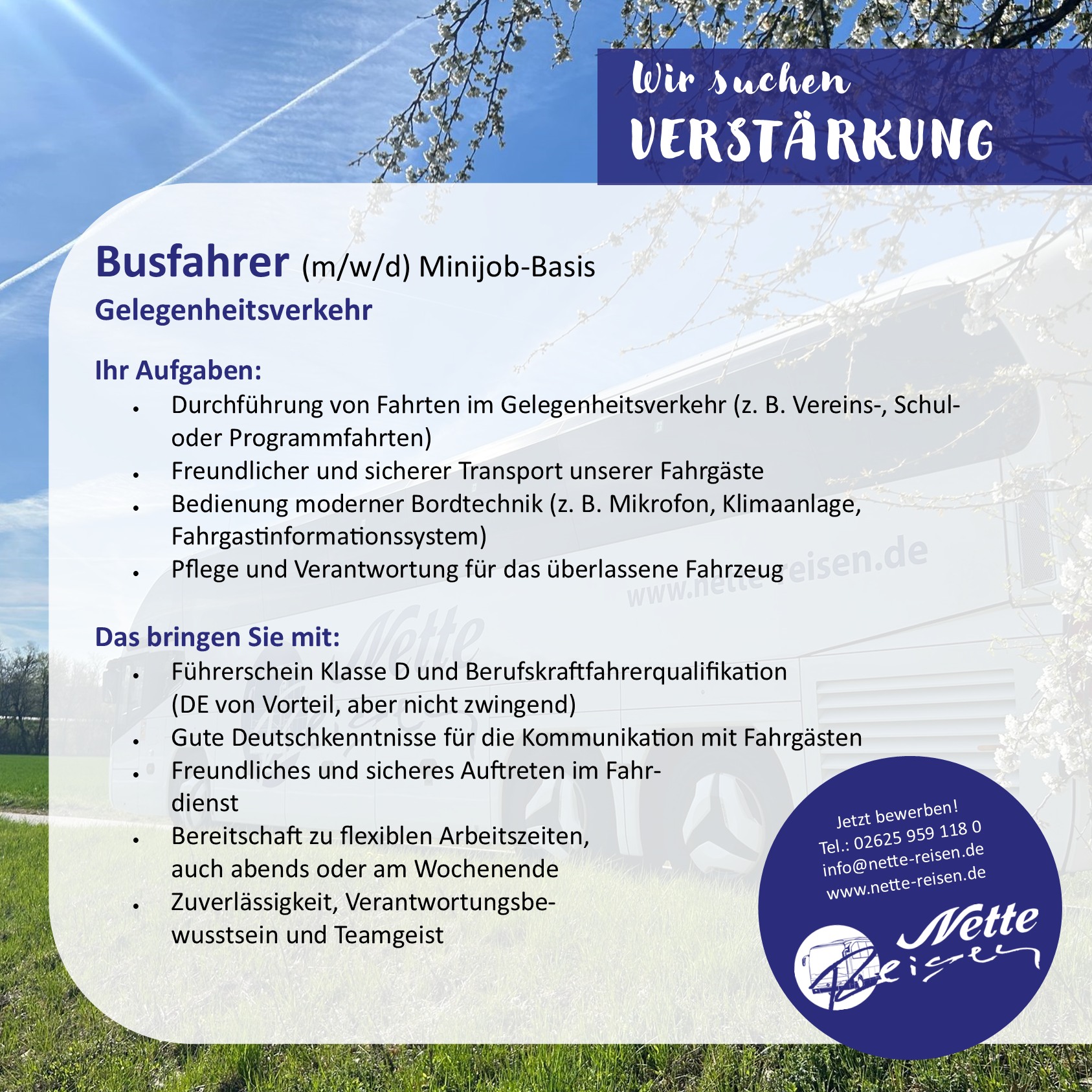 Egal, ob Sie eine Karriere als Busfahrer:in, in der Verwaltung oder im Tourismusmanagement anstreben – hier entdecken Sie vielseitige Möglichkeiten, um Teil eines engagierten und dynamischen Teams zu werden. Auch Aushilfs- und Nebenjobs in verschiedenen Bereichen sind bei uns immer wieder zu finden.