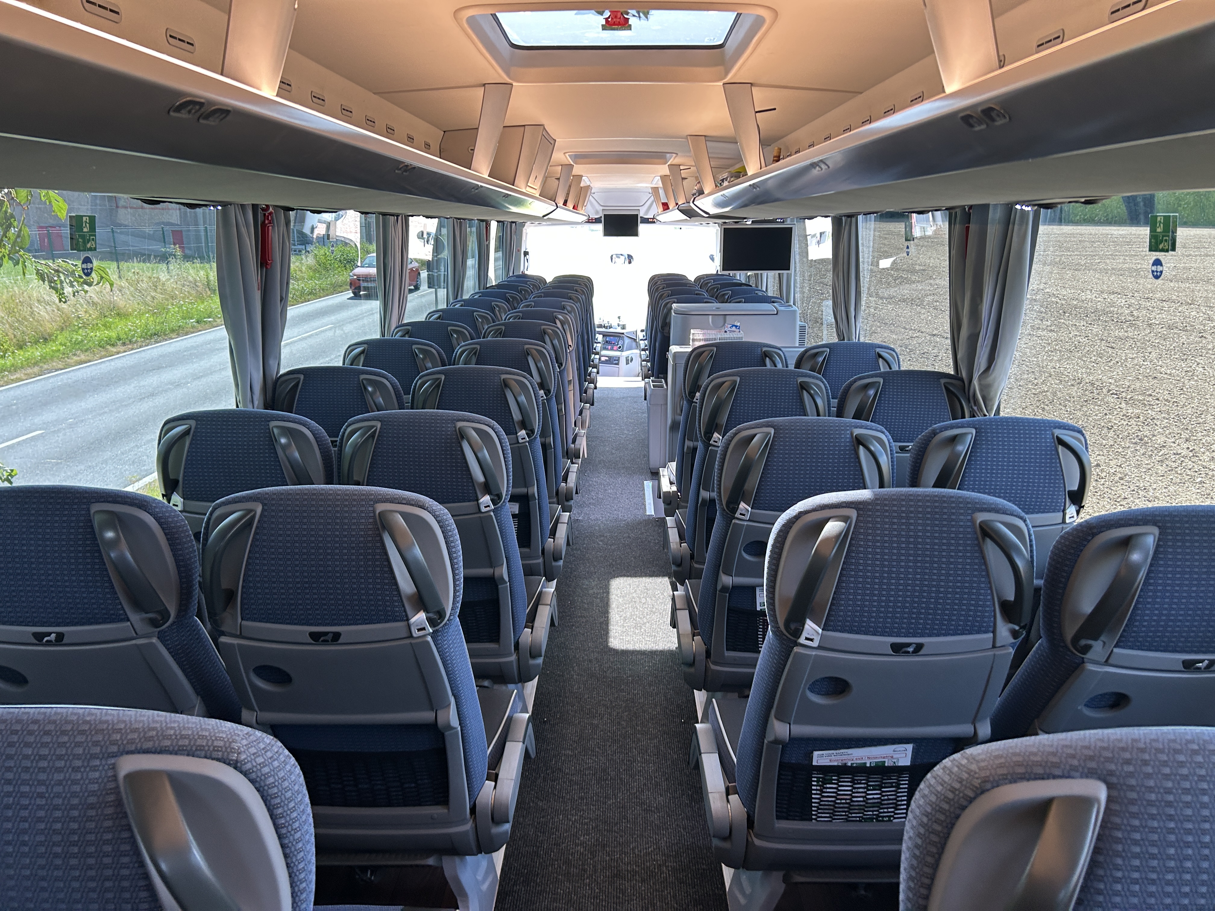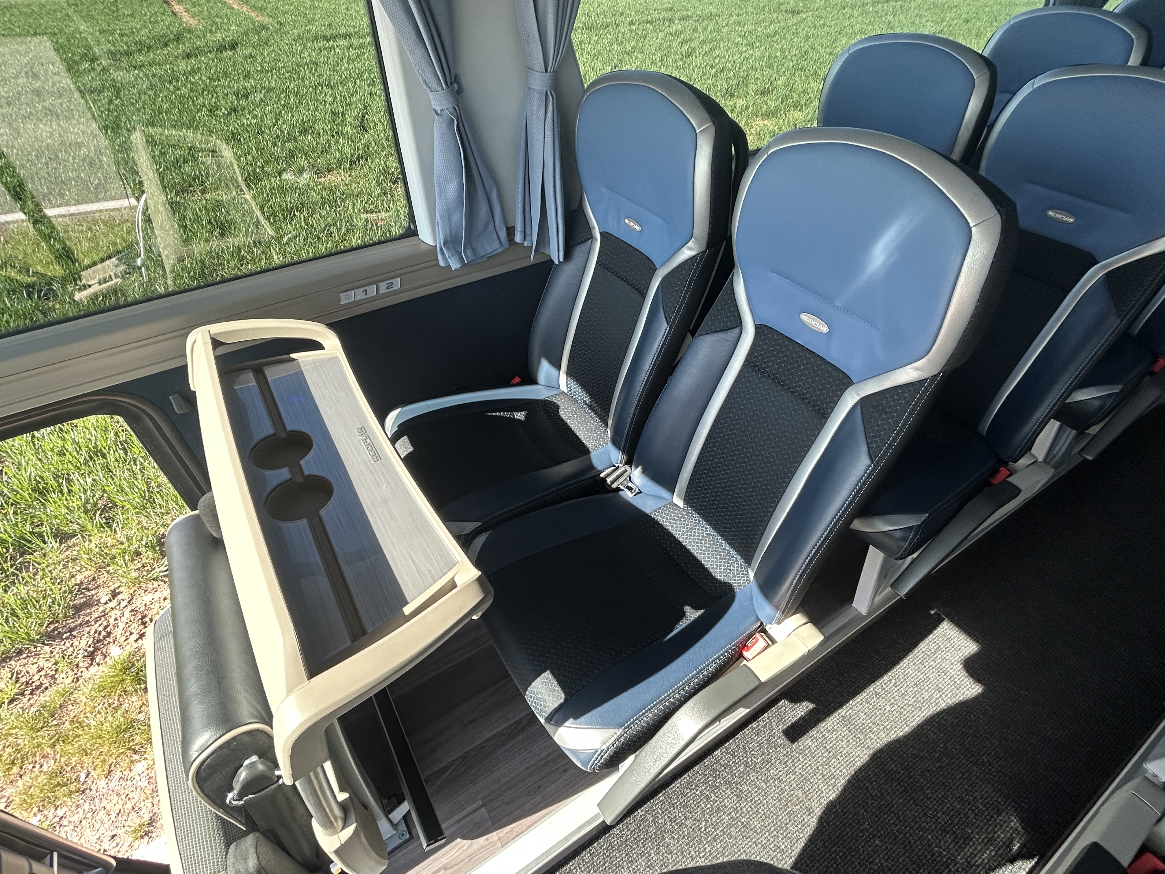 Bequeme Reisesitze, eine leistungsstarke Klimaanlage sowie großzügiger Stauraum für Gepäck sorgen dafür, dass auch längere Fahrten komfortabel und entspannt verlaufen. Große Panoramafenster ermöglichen zudem eine hervorragende Aussicht während der Reise.