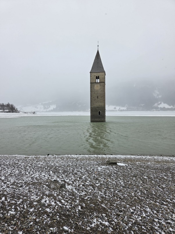 Dort wartete allerdings eine kleine Überraschung: Statt Frühlingserwachen hieß es erstmal Winterrückkehr. Beim Ausflug rund um den Reschensee am Donnerstag wurde der Frühling kurzerhand gegen Winterjacke und feste Schuhe getauscht. Schnee statt Blüten – damit hatte wohl niemand gerechnet.
